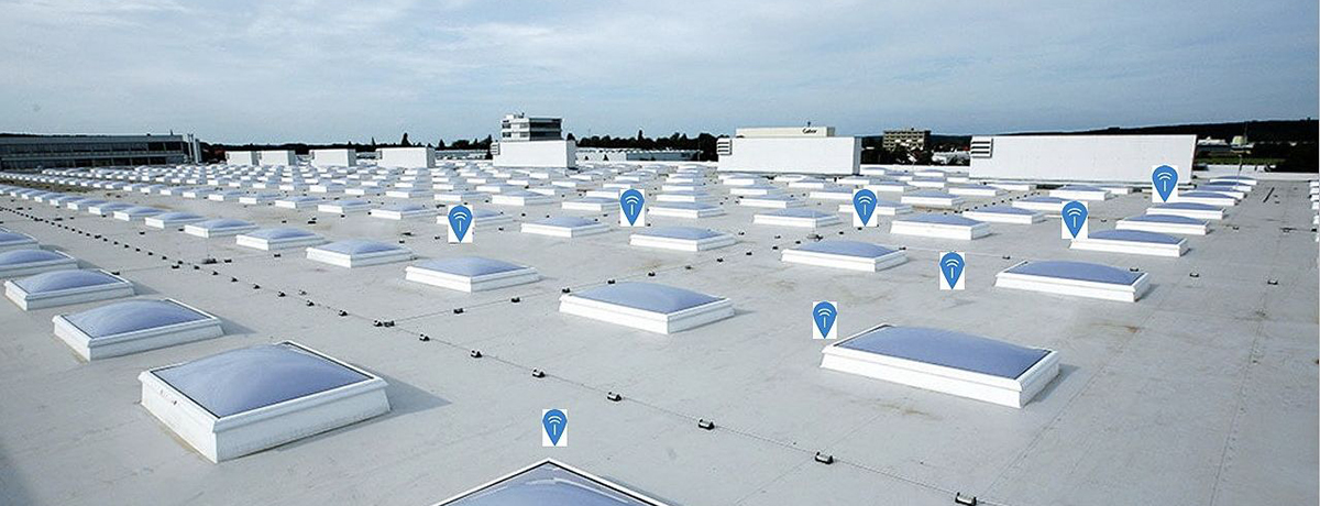 Die von uns eingesetzten Monitoring-Systeme überwachen die Dachbereiche und sind daher hervorragend für die Feuchtefrüherkennung bei Warmdachaufbauten geeignet. Die dahinterliegende Technik ist mittlerweile erprobt und hat sich in der Praxis bewährt.